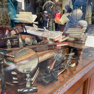 Coming back into focus, you’ll find the shop’s left and back walls stocked ceiling to floor with a vast variety of notepads, glasses cases and blank books. The items featured on display to passersby are impressive on their own.